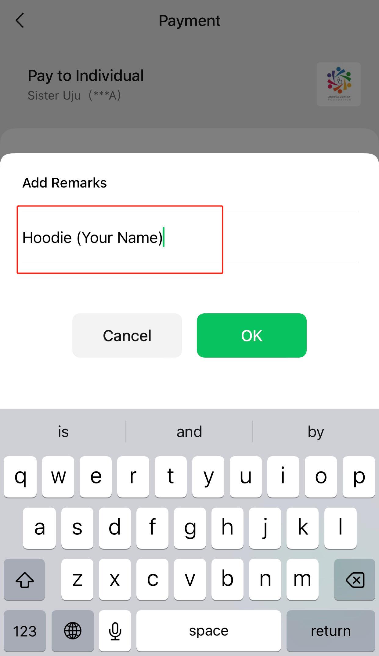 - Step 2: Kindly Select "Add Remark" or "Add note" option in Alipay or Wechat respectively as shown below